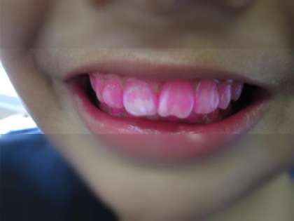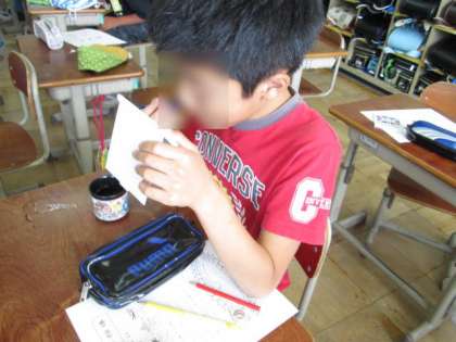 今週はむし歯予防週間です。教室では,カラーテスターを使って,歯磨きの仕方を確認しました。