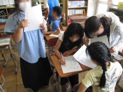 外国語活動(英語)の様子です。今日は,「I can 〜.」「Can you 〜?」の表現を使った活動をしました。ALTと一緒に英語で会話する子もいました。