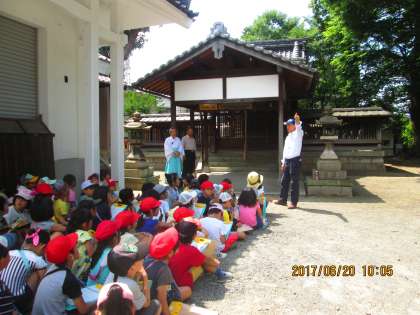 暑い中でしたが,神社では熱心に質問をしたり,堤防では「ヤッホー!」と声を出したりして,子どもたちは元気いっぱいでした。