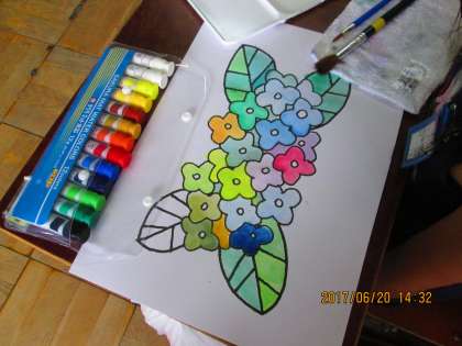 2年 絵の具でかこう 〜アジサイの花〜