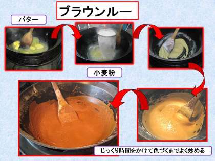 今日の給食は,『トマトシチュー』でした。じっくり時間をかけて作ったブラウンルーが,おいしさのポイントの一つです。もう一つのポインは,たまねぎをあめ色になるまでよく炒めること。そしてもう一つ,それは ルーを入れてからも1時間以上煮こむことです。