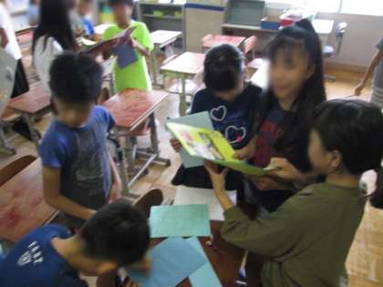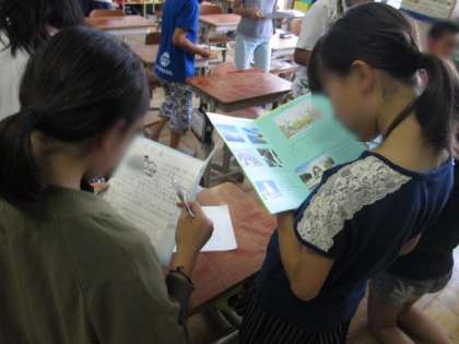 修学旅行に向けた取組と並行して学習している国語の「パンフレットを作ろう」の様子です。今日は完成したパンフレットを,友達と交換して読み合いました。