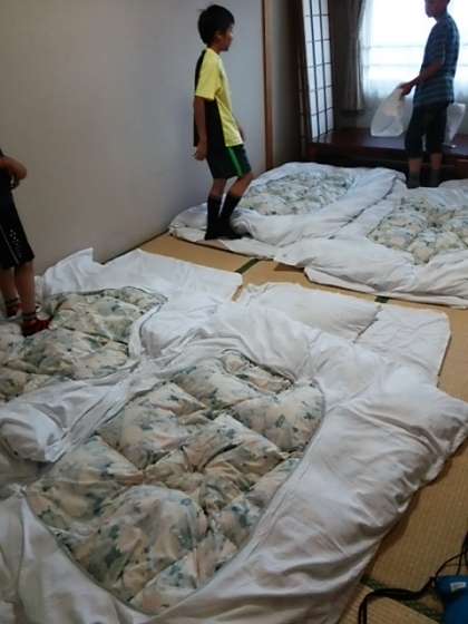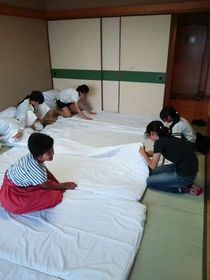宿舎の「良寛荘」に到着しました。先に到着していた荷物を整理したり,自分の寝る布団の準備をしたりしました。