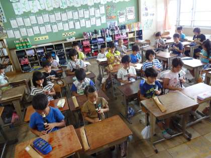 授業が終わった後でも,みんなで楽しそうに音楽に親しんでいます。