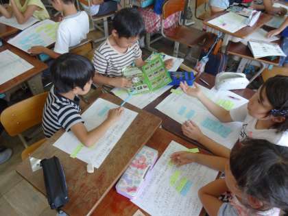 2つのパンフレットを比べ,パンフレットの特徴について考えました。