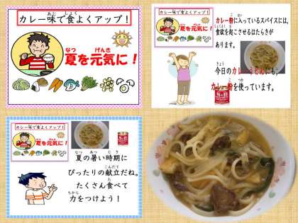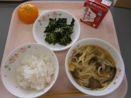 とても暑い1日でしたが,『カレーうどん』が食べやすく,デザートの『みかん』が後口をさっぱりとさせてくれました。