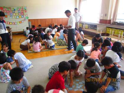 これは,部活動「かるたキッズ」の 5・6年生を 中心にして,全校の みんなに 参加を 呼びかけて,生活科ルームで 行いました。