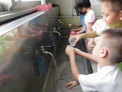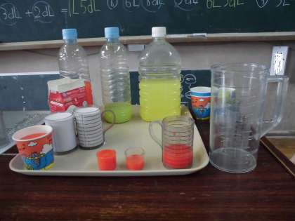 水などの かさを くらべたり はかりとるときに ますを 使うことを 学習しています。