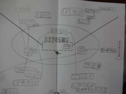 Yチャートの思考ツールを使って,登山体験・五山の送り火・大文字保存会の長谷川会長の話で得た情報を,操作・分類,整理し受け継いできたものの確信にせまります。