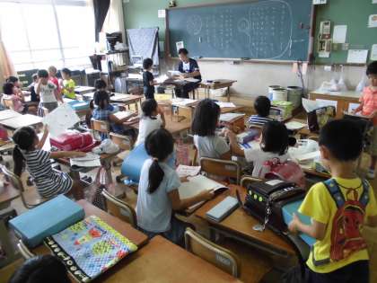約1ヵ月間の夏休みも終わり,授業が再開しました。久しぶりに友達や先生達と会った子ども達は,夏休みの思い出や自由研究など,笑顔いっぱいで話していました。