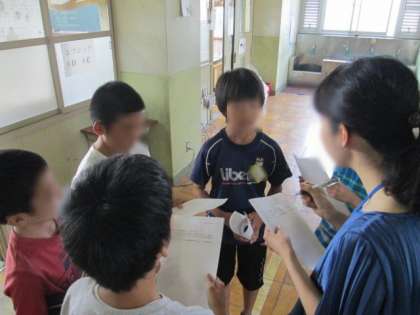 10月7日(土)のSSHの発表に向けて,休み時間に打ち合わせをしています。