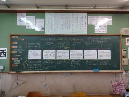 6つの資料を共感・反対で整理し,グループ→全体で交流しました。