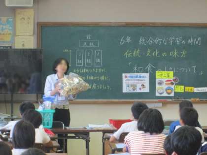 今日は,本校栄養教諭による「和食のよさ」について話をしてもらいました。
