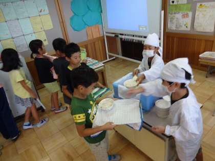 普段とは違う環境で食べる給食に,いつもより笑顔でおいしく給食をいただくことができました。
