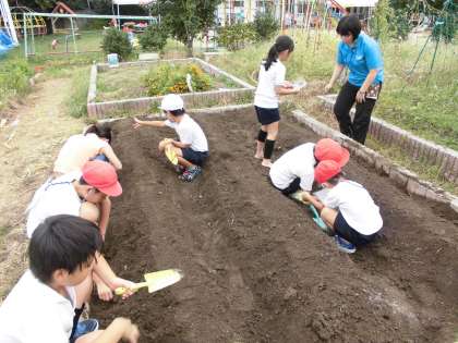 夏野菜がたくさん収穫できたので,冬野菜にも期待している子どもたちです。