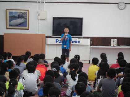第1回全体ミーティングでは,区長や店長など各ブースの長が1日の豊富を述べました。