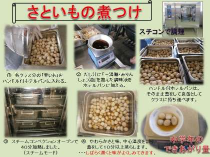 スチコンを使って『さといもの煮つけ』の行事食を仕上げます。