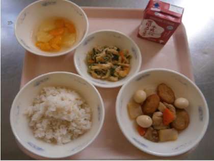 今日の給食は,デザートに『フルーツ寒天』がつきました。