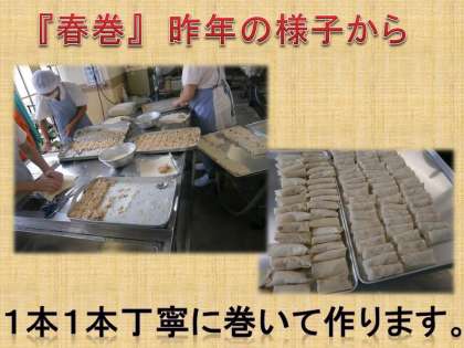 明日は,1本1本手作りの『春巻』です。心をこめて作ります。