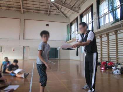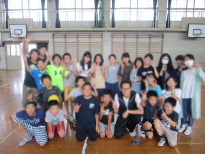 最終日はドッチボールでお別れ会を行い,子どもたちから実習生に向けて