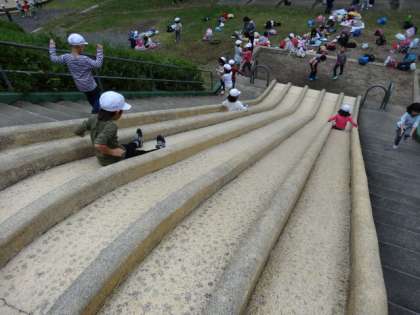 最後は,5連ある巨大すべり台やアスレチックで遊びました。