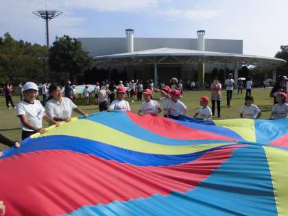 午後は,みんなで協力しての綱引きや,親子競技「走れ!超特急」,そして「みんなで楽しくパラバルーン」をしました。