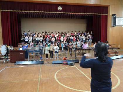 広い体育館で行う合奏は,いつもとちがって新鮮ですね。