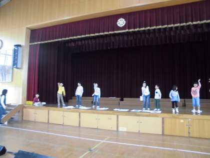 マイクを通して発表しようと考えていましたが,「私,マイクなしで大きな声で言う!」という子もでてきました。やる気いっぱいのつくし学級の子どもたちです。
