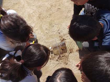 『今日の観察でつかうのは,温度計とカバー,そしてスコップとペットボトルを使うよ。