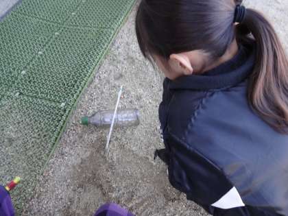 「スコップってことは土を掘るってことだよね。地面の中を温度計で測るんだね。」