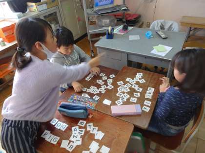 ・DOG CAT PIGなど 持っているカードの中から探して言葉を完成させるのは難しそうでしたが,楽しい活動をしながら,英語に親しんでいきたいと思います。