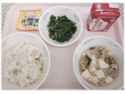 今日の給食は,とうふ料理『豚肉ととうふのくず煮』でした。