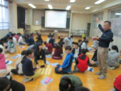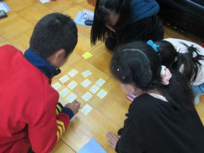 本校の百人一首部の担当者から百人一首の歴史やルールを教えてもらい,何度も何度も札を取り合いました。初めはルールが分からずに見ていただけだった子らも,授業の最後には,札を取る一瞬のために集中する姿が見られました。