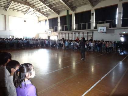 「地球星歌」を全校で歌いました。