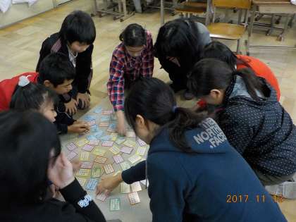 最後に100枚取りをしました。札を探す集中と 札を取った時の歓声が交互に響きました。