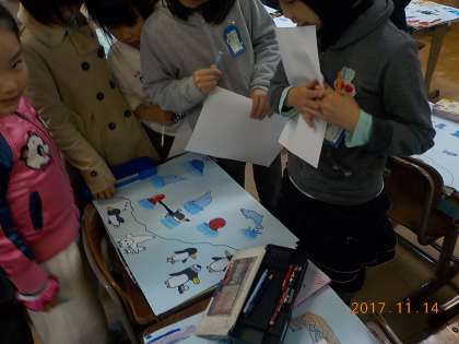 さて,この日は 友だちの作品の いいところ見つけをしました。