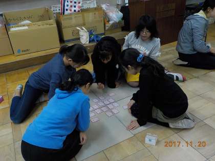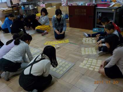 ピンク色グループは,散らし取りで枚数を競っていました。