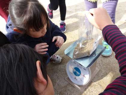 はかりの使い方を知ったので,前回の学習で子ども達が思っていた1Kgってどれくらいの重さなのかな?ということを確かめにいきました。