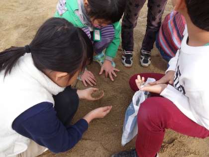 『袋に砂をつめて,ちょうど1Kgにしてごらん』という指示のもと,グループで協力してちょうど1Kgを作ります。