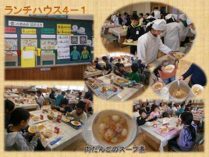 4年生の子どもから「にくだんごのスープには,1つ1つまるめてつくってがんばったことが伝わってきてとってもおいしかったです。じゃがいものピリカラいためはじゃがいもがやわらかいけど歯ごたえがあっておいしかった。毎日おいしい給食 ありがとうございます。これからもがんばってください。」という感想が届きました。