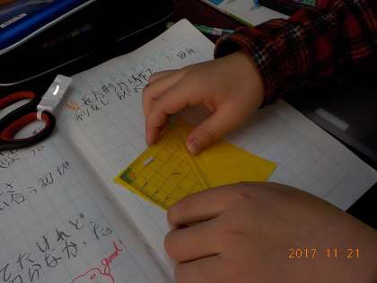 子どもたちは 真新しい三角定規を取り出して 調べ始めます。