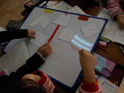 図形を 目の前に 「調べる」「確かめる」は まだ 慣れないようですが,学習をすすめる中で 操作が 身についてきました。