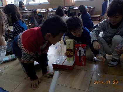 材料を 目の前に 「どうしようか」相談する グループ。