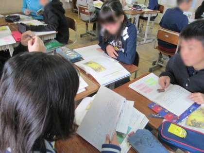 国語科の「この絵,私はこう見る」の学習の様子です。