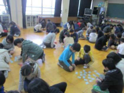 総合的な学習の時間「日本の伝統・文化の味方」の五色百人一首大会の様子です。