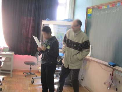 英語の「Let’s go to Italy. 友達を旅行にさそおう」の学習の様子です。