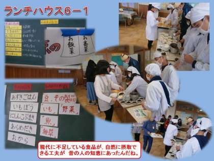 明日は,和食について紹介します。『ごはん』『いわしの変わり煮』『ブロッコリーのおかか煮』『キャベツの吉野汁』一汁二菜の献立です。お楽しみに。
