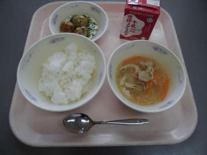 細ねぎの入った「ぎんあん」を最後まできれいに食べきれるように,和食ですがスプーンをつけています。どの子も最後まできれいに食べきってくれていました。