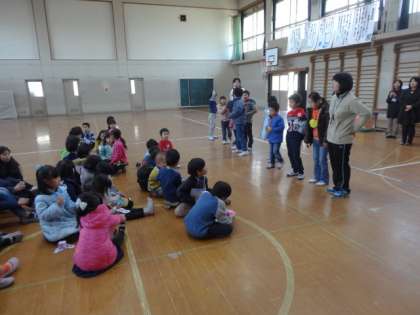 最後は,1年生・6年生・つくし学級・民生委員の方が集まってお礼を言い合いました。