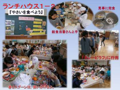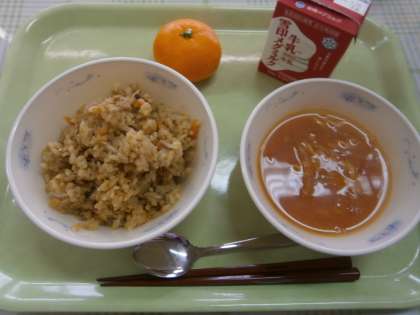 一緒に給食を食べた1年生が「カレーピラフが最高,こんなにおいしいのが食べられてうれしい。」「トマトは苦手やけどこのトマトスープおいしい。」と 食べられることのありがたさを感じてくれていました。また 大好きなカレー味,おいしいたきこみご飯,みんなと楽しく食べる喜び,全てが幸せと感じているようでした。